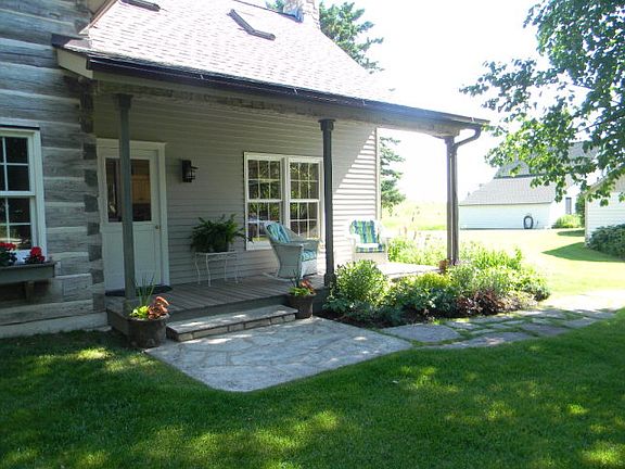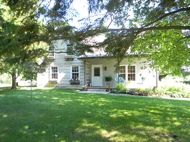 A log home from 1847 that has been restored to current date while keeping the charm of the old farm house. The spacious and open concept gourmet kitchen boasts both granite and butcher block tops, state of the art appliances (Sub-Zero & Wolf), wood floors, lots of light, spacious butler pantry and large dining area. Cozy living room with log walls & Jotul wood stove that can provide plenty of heat during the winter months. The granary is heated with 2 offices & workshop. The barn has been reinforced and offers lots of storage. Garden shed, covered porch, beautiful views. Not enough space or acreage? Additional acreage available (see private remarks). Easy building addition plans available to increase bedroom/ living space (see documents).
