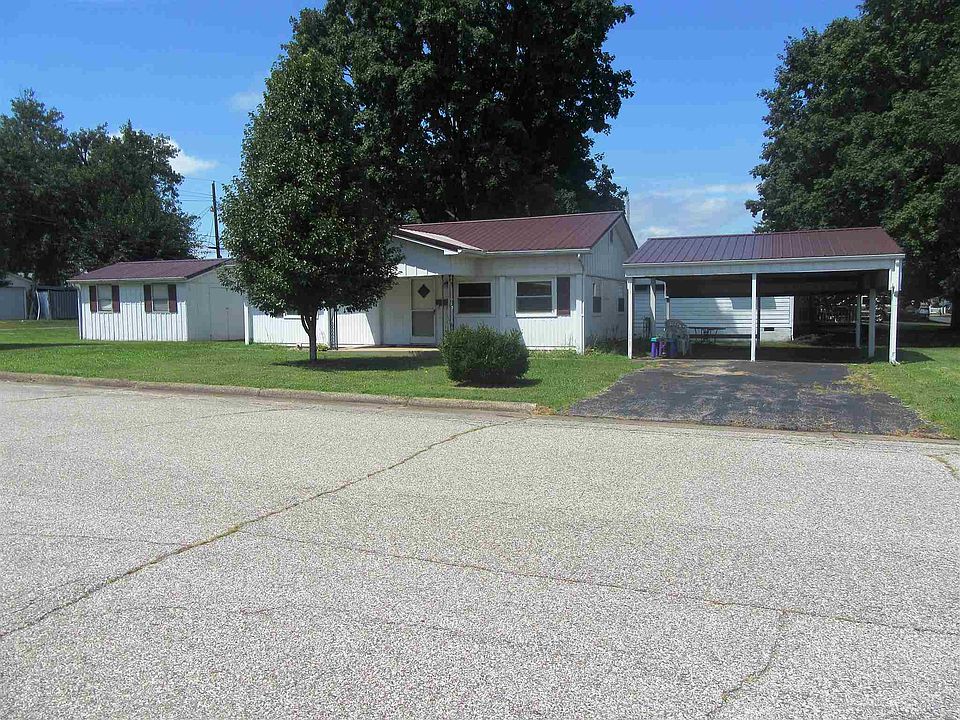 2 bedroom, 1 bath modular home located on a nice corner lot in town. Living room, kitchen, covered front porch. Nice carport, and storage building! Immediate possession!