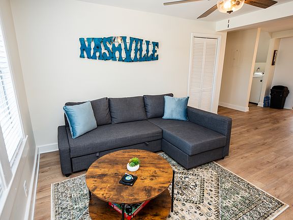 Imagine living in the melody of Nashville, Tennessee, where you'll find this exquisite second-floor apartment artfully combining comfort, convenience, and southern charm. Boasting two generously sized bedrooms, each outfitted with a plush queen-sized bed, roomy closet, nightstand, and dresser, this home invites you to unwind in its thoughtfully designed spaces. A well-appointed bathroom serves the residence, featuring a walk-in shower, a sleek single vanity, and mirror, all conveniently located in the common area. High ceilings soar throughout the indoor spaces, amplifying the sense of luxury and openness. The heart of this home is its welcoming living room, complete with a cozy couch, a TV for entertainment, and a dining table perfectly sized for a party of four. An open-concept kitchen flows seamlessly from the living area, packed with all the essential appliances, including a full-sized fridge and microwave, where culinary creativity knows no bounds. Luxury vinyl flooring gracefully underpins every step within the residence, marrying durability with chic aesthetics. Step outside to your fenced area, an idyllic spot replete. Driveway parking ensures your vehicle is as comfortably accommodated as you are. Just a stone's throw away from everything in Nashville, indulge in the local lifestyle with nearby restaurants, stores, and markets, encapsulating Nashville's vibrant culture and spirited community within your reach. Rent now! ALL UTILITIES INCLUDED (WiFi, water, electricity) Smoking: Not allowed indoors; designated fenced area available. Parking: One vehicle allowed. Pets: Allowed with approval; $250 nonrefundable pet fee. Lease: Preferred for one year but flexible. Rent & Deposit: $1,800/month; $1,800 refundable security deposit. Utilities: Tenant responsible for all except Wi-Fi (included). Appliances: No washer or dryer provided.