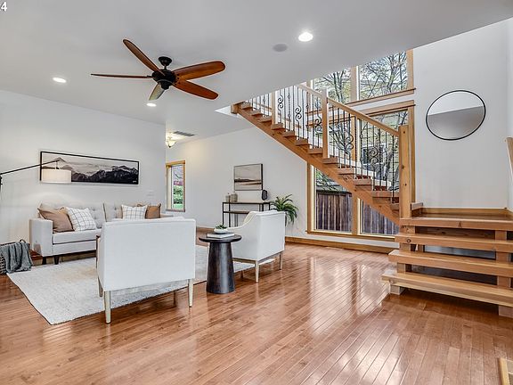 Welcome to 1822 May St where exquisite craftsmanship meets tasteful design in this charming 3-bedroom, 2 1/2 bathroom home with office. From the moment you step inside, you'll be captivated by the warm and inviting atmosphere, accentuated by wood floors, exposed beams, and ample natural light flooding through large windows. The kitchen is a chef's delight, boasting stainless steel appliances, a gas range with down draft, beautiful natural wood cabinets and custom concrete countertops. The primary bedroom offers a serene retreat with a deck overlooking stunning views of Mt. Adams, while the ensuite bathroom features a luxurious soaking tub and walk-in shower. Outdoor entertaining is a breeze with sliding doors leading to a covered deck complete with an outdoor kitchen and built-in BBQ. The yard is beautifully landscaped and fully fenced yard. Raised beds, herbs and berries make this perfect for gardening enthusiasts. Additional parking area for a boat or RB. Conveniently located between downtown and the heights, this home offers easy access to schools, parks, and the pool, making it the ideal haven for those seeking both comfort and convenience in Hood River. Don't miss out on the opportunity to make this your own slice of paradise!