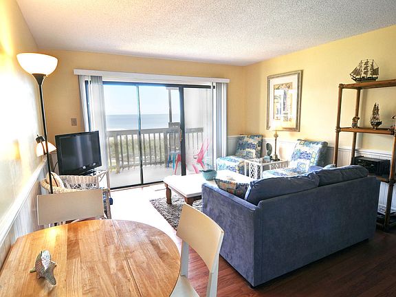 Oceanfront 1 bedroom condo has a cozy, relaxing and beachy feeling from the moment you walk in and see the incredible views! Arched panel doors, wainscoting, remodeled bathroom, flooring and living area means you can just move right in and add your own personal touches! The HVAC was replaced in 2012 as well. Any season is a great time to be at the beach! This unit has not been a rental since 2012 (and did $13,654 that year!) so you can call this your home away from home or choose to make this your investment property.