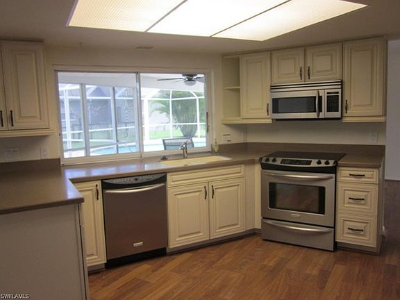 Large corner lot, nice floorplan with great kitchen layout featuring pass thru to screened lania/pool area