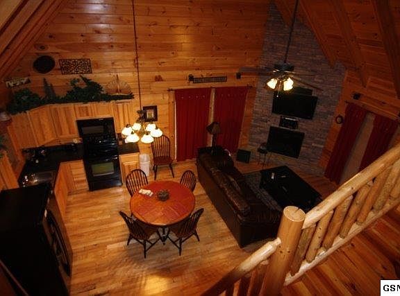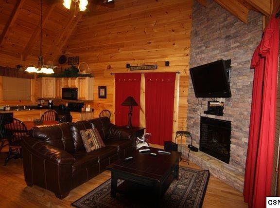 Luxury cabin located in the prestigious Bear Creek Crossing, a gated community with a beautiful 60' waterfall at the entrance, an indoor and outdoor swimming pool, miniature golf course and children's play area. Cabin has a king bed with bedside jacuzzi, a great room with 2 queen sleeper sofas, two fireplaces and a loft. For your entertainment there is a pool table, Xbox, CD player, 3 flat screen TV's, Wifi. Cabin has a fully equipped kitchen for preparing meals indoors or a charcoal barbeque grill on the deck for cooking outside. Or just relax in your hot tub or the dry sauna on the deck overlooking the beautiful mountain view. All of this just minutes from the area attractions, shopping and dining in Pigeon Forge, Gatlinburg and Sevierville. Cabin Name: Ever After.