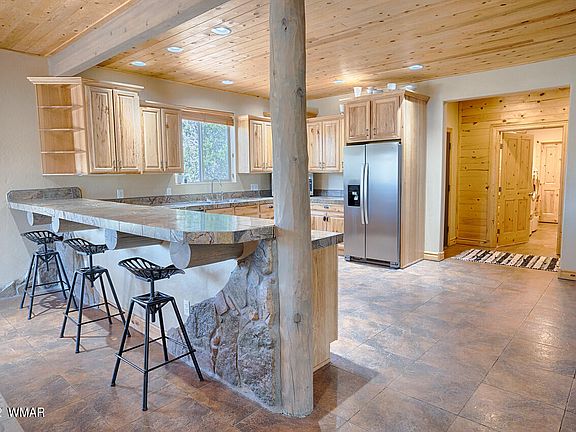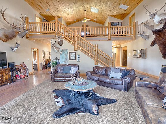 Country living awaits you in the beautiful White Mountains. This charming home offers an open floor plan with plenty of custom touches and boasts large oversized rooms with vaulted T&G ceilings throughout. 1st level master, open very functional kitchen with granite tile, plenty of storage, large dining area and 2 very oversized bedrooms upstairs on each side of the loft. NO HOA - YES TO YOUR RV!! A lot of owner pride in this one.