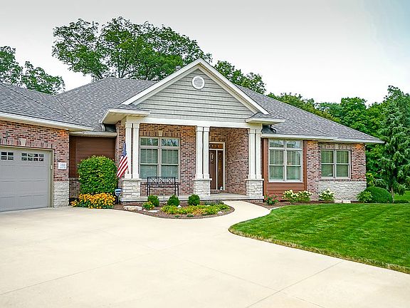 A custom built ranch home on a quiet cul-de-sac on 5¼ acres with an awesome view of timber behind the house. It has three bedrooms, two and a half baths. Designed by Plum Creek Builders and built in 2009 with top quality materials and workmanship. Features a large great room with 13 foot ceiling, wood burning fireplace, and Bolivian rosewood hardwood flooring. Kitchen boasts custom cherry cabinetry by Helmuth Custom Kitchens (HCK), and Silestone quartz counter tops. The Master suite has a generous walk in closet with custom built ins. The Master bath has a tiled walk in shower. Two other bedrooms have ample closet space and share a bathroom. There is a large laundry/mud room with customer hickory cabinetry by HCK, sink and convenient second refrigerator. The walk out basement is unfinished with the exception of a small half bathroom. The home exterior is brick front and Hardie Board siding. The deck is constructed with low maintenance materials including AZEK decking. The HVAC is geothermal by Carrier. Also provided is a whole house Generac standby generator. The property is well landscaped and the lawn areas have an irrigation system. Call 309-241-2661 for more information or to schedule a visit.