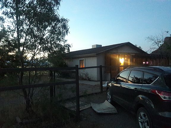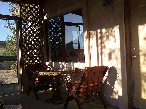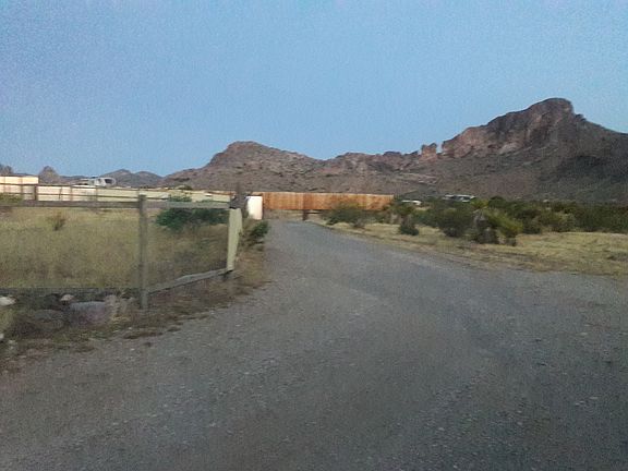 Cute, nicely presented 2 bed 2 bath home in foothills of Black Mountains. Recent maintenance/repairs just being completed. INCLUDES adjoining 2.35 acre parcel to south. Enter through screened in patio into spacious living area. Part open plan design. Kitchen and dining to the left. Nice size kitchen, plenty of cabinets, open plan to dining area. Large master bed, room for sofa or large dresser etc. Walk in closet. Master bath has tub/shower with new tiling. Hallway with 3/4 bath leads to utility area, 2nd bed and back (side) door. 2 Window A/C units, hardwired baseboard heaters. Evap cooler on roof does not work. Fencing and separate fenced areas around the home and front yard. Nice size workshop and storage units with open patio area from home to storage. One storage unit is climate controlled. Stunning views of nearby mountains/rock formations. Close to riding/hiking trails in wilderness areas. Attractive washes, but not in special flood zone. Should buyer not want adjoining lot, seller will consider selling home on its 2.35 acre parcel. Make an offer.