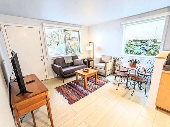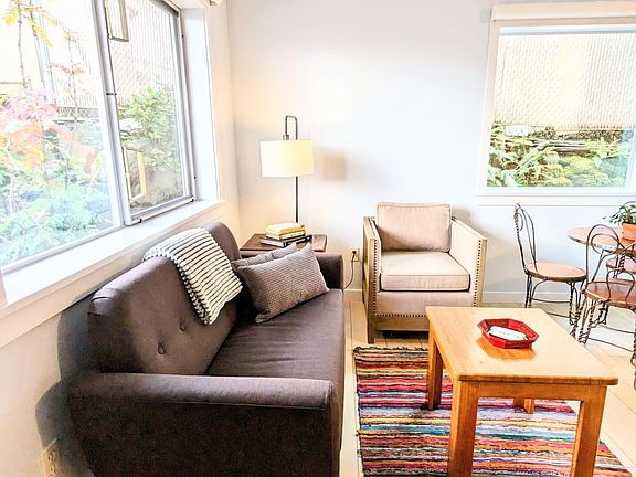 Hi. This is a fully furnished, renovated one-bedroom in a great, quiet location. Private, reserved parking spot. In-unit washer/dryer, dishwasher, and fiber-speed internet. Lots of natural light, private patio, and dedicated raised garden beds. Located just a few blocks from Seattle University, light rail, street car, great restaurants, cafes, a local brewery, and bakeries. Easy access to I-90 for hiking and mountain adventures. This is one of four wonderful apartments in a safe, well-managed building with other professionals. Fully furnished with full kitchen needs, bedding, washer/dryer, dishwasher, hi-def Roku TV, hi-speed internet... Fully furnished and stocked (all kitchen, bedding, towels, etc.) Remote-controlled black-out shades Fully stocked kitchen with new stainless dishwasher New large washer and dryer in unit New tiled bathroom with huge shower Large closets Private outdoor patio with furniture Private reserved off-street parking All bedding and towels included Beautiful landscaping managed by a groundskeeper Lots of light and cross ventilation Super fast private internet for streaming 43" UltraHigh Def 4K Roku TV super high resolution Digital locks Two zone heat control Contact with any questions! Cheers! 12 to 18 months lease available. Move-in costs include first, last, and refundable security deposit. This unit is fully furnished and fully stocked. Apartment is designed for a couple or one person. Private reserved parking on-site and monthly cleaning available. Utilities billed separately. All landscaping and maintenance handled by the owner. No smoking. No pets.