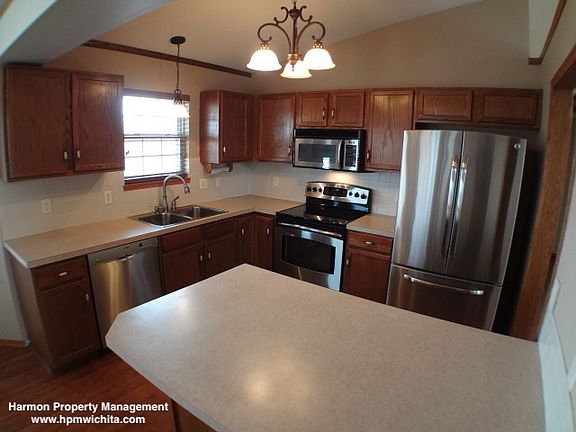 SCHEDULE A SHOWING ONLINE AT: showmojo.com/lh/bdee56f0dc PLEASE USE EXTENSION 157 WHEN CONTACTING US ABOUT THIS PROPERTY AT 316-768-4363 1822 S Prescott St in Wichita is a bi-level 3 bedroom 2 bath with an attached 3 car garage and privacy fenced backyard home located near West Kellogg and South 107th St W in the Goddard school district. The top level consists of a living room, kitchen, dining room, hall bathroom, master bedroom with two closets and a second bedroom. The kitchen has stainless steel appliances. A stove, microwave, dishwasher and fridge provided by the property owner for tenant use. A sliding glass door provides access from the dining room to the wood deck and privacy fenced backyard. The lower level includes a family room with a wet bar area, a third bedroom, full second bathroom and a separate laundry room with a washer & dryer hookups available. A sliding glass door from the family room opens out into the backyard. Rent is $1295 per month with a $1200 security deposit. Minimum one-year lease required. Tenant is responsible for all utilities, trash service, and lawn care. Pets are negotiable. Property owner has final approval of all pets. Additional nonrefundable pet fee of $300 for the first two pets and $150 for each additional pet. All prospective tenants must complete a quick screening before being allowed to view the property in person. We perform background checks. $35 per person over the age of 18. PLEASE USE EXTENSION 157 WHEN CONTACTING US ABOUT THIS PROPERTY AT 316-768-4363