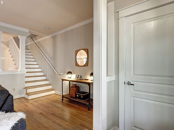 On a gracious tree-lined street next to Hawthorne fun, lies a Craftsman sanctuary with historically inspired design and modern amenities. A secluded front porch welcomes you inside to high ceilings, traditional trim, hardwoods, tidy new fixtures, and paint. 2bd, 2ba, and laundry on second floor. 3rd floor offers a bright, vaulted retreat with sunset city views. End Unit, quiet townhome. Detached 2 car garage has studio apartment above! [Home Energy Score = 7. HES Report at https://rpt.greenbuildingregistry.com/hes/OR10040982]