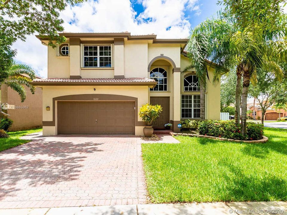 Spacious & Inviting 4/4-Unique Design w/Contemporary feel.Oversized living room w/vaulted ceilings upon entry and step up to the formal dining room. Designer kitchen - new cabinets, quartz counters, stainless steel appliances (new double ovens and microwave) with spacious island kitchen. Bay window breakfast area -seating for six overlooking pristine backyard. Step down family room w/bdm on 1st - ideal for office/guest rm. New engineered wood floors in office, stairs, landing and master suite. New carpet in two secondary bedrooms. His/Her baths w/sitting rm area. Covered paver patio & outdoor fan/light, accordion hurricane shutters, fenced yard low maintenance synthetic lawn, private corner lot. Exterior of home was completely repainted 2018 - Sherwin Williams Paint. Gutters thru-out.