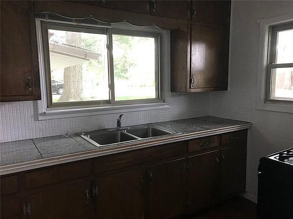 Brick 2 bedroom home has attached garage. One level living; laundry next to kitchen. Living room, as well has kitchen has nice looking vinyl type planks. Check out the nice roof! Deep, green, partly fenced yard. Quick possession very possible.