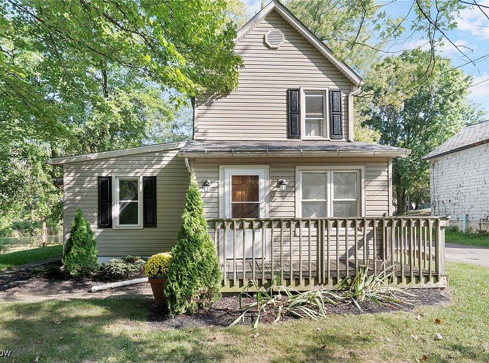 This home boasts a spacious and functional layout with several modern updates and features. The large garage is equipped with a workbench and shelving, perfect for DIY projects or extra storage. The covered back porch extends the living space outdoors, making it ideal for relaxation or entertaining. The home offers convenience with an electric or dryer hookup and features a huge closet in the bathroom, providing ample storage space. Inside, the house showcases new luxury vinyl tile (LVT) flooring, offering durability and style. The vinyl windows throughout the home are energy-efficient and low-maintenance. The roof on both the house and garage have been recently replaced, ensuring protection and longevity. A walk-up attic provides additional storage options, enhancing the home's practicality. Outside, the fire pit area adds a cozy and inviting touch to the backyard, perfect for gatherings or quiet evenings. The house is finished with vinyl siding, combining aesthetic appeal with ease of maintenance.