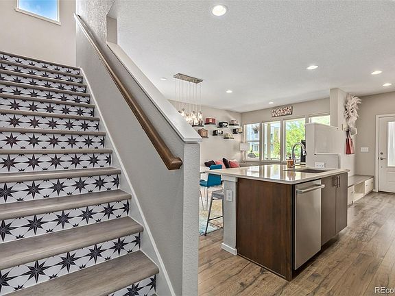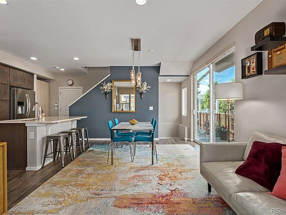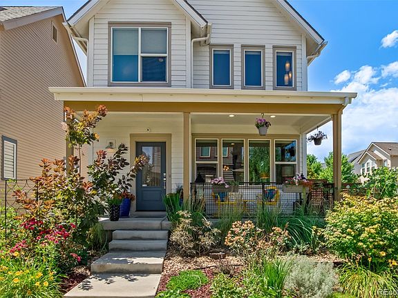 Situated on a coveted corner lot, this charming home boasts beautiful, mature, perennial landscaping that requires little to no maintenance. This gem of a 3 bedroom, 3.5 bathroom + loft home is located in Denver’s highly sought after neighborhood of Midtown. A covered front porch welcomes you into the home, where you’ll find a pristine primary living space with plenty of room for cooking, dining, and relaxation. Wake up to beautiful morning sunlight across its open floor plan. The kitchen features stainless steel appliances, quartz countertops, custom cabinetry, and a large island. Head down to the fully finished basement or go upstairs to enjoy spacious bedrooms and a soaring loft space with vaulted ceilings that can be used as your office, reading area or additional family space. The master suite includes vaulted ceilings, a spacious bathroom, and a walk-in closet. There are updated window coverings and custom cabinetry throughout, The attached 2-car garage includes built-in overhead storage. Celebrate holidays, your favorite sports teams or mix it up and have fun with permanent outdoor Oleo lighting. Midtown sits conveniently in northwest Denver just 10 minutes from downtown with easy access to highways and the G and B light rail lines. The active and friendly Midtown community boasts frequent events, two dog parks, a community garden, and the award-winning Bruz Beers Taproom.