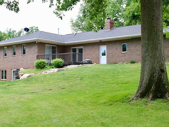 Custom built brick ranch home on 1.88 Acres! Very well built home. Custom eat in kitchen with appliances remaining (stove/oven is new and has never been used). Main floor offers formal living room, formal dining with built in hutch plus family room. Main BR has walk in closet and bath. Walk out Lower level is finished with kitchenette with appliances remaining, family room (pool room) with full wall of built ins, office area, 4th BR, bath, and large laundry room with full wall of storage. Outdoor living offers two decks and beautiful patio area. The following inspections have been completed by the seller: Well water test (passed), flood insurance amendment removing property from flood map, septic inspection (passed), survey. All copies will provided with seller disclosure. Internet service is through Mediacom. Water softener owned. LP tank owned, buyer will need to reimburse the seller for the balance left in the tank.