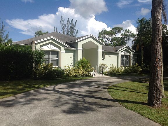 CBS Home in Jupiter Farms- Courtyard Design - 4 Bedrooms 3 Baths, 4 car Garage, Detached garage/workshop, Detached Guest Suite 1 bedroom 1 bath, Screened in Pool. Front Entry Courtyard into Lanai and pool area. Cover Back patio 24 X 8 Ft, Guest Suite on separate side of pool. (the main house has 3 bedrooms) Screened 16 X 36 ft. Home has many amenities- including open floor plan, split bedrooms, High vaulted ceilings, Large Master bedroom double oversized walkin closets, central vac, intercom, house is wired for generator. Accordion hurricane shutters. 1.4 acres fenced in, circular driveway, paved road. Close to Indiantown Rd and Fire Station. Easy to show.
