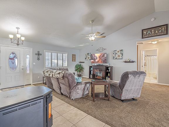 Stunning, single story Tehachapi home features an open floorplan with 2,028-SqFt of living space, carpet & tile flooring, vaulted ceilings & ceiling fans, plantation shutters, plenty of storage space, water softener & indoor laundry room! It's also an entertainers dream w/the spacious formal dining area & beautifully upgraded kitchen, quality appliances, wooden cabinets, granite countertops & easy flow to living space and/or back yard. Bedrooms are bright & spacious! The primary bedroom features an enormous walk-in closet, private bathroom w/spa tub & sliding door leading to the rear yard. Car enthusiasts, this is for YOU! Check out the detached 3-car garage, with car lift & RV parking! Have out of town guests?! It also includes a studio space w/a full bathroom! Enjoy the huge rear covered patio, charming backyard landscaping featuring a cozy grassy area w/play set for the little ones, plus lots of privacy! Excellent mountain views! This could easily be your forever home!