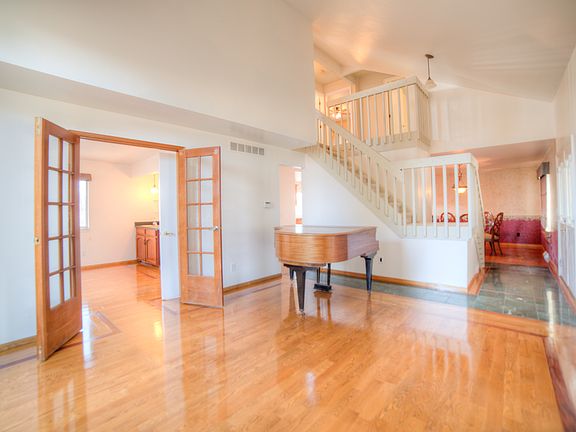 Beautiful, large home in Carriage Place! Walk in to stunning wood floors with marble inlay throughout the main level. Bright formal living room with window seat and french doors guiding you to a den with a charming wet bar. Access to upper deck in kitchen with amenities such as stainless steel appliances and granite counter tops. Kitchen opens up to family room with gas fireplace. Dining room adjacent to kitchen. Upstairs master bedroom with double closet space and full master bath. One bedroom with attic access, another bedroom and additional full bath also upstairs. Finished walk-out basement perfect for entertaining with sitting room with custom built-in cabinets and bar, great room, bedroom, and 3/4 bath. Spacious yard with walk-out upper and lower decks with stairs. Close to ample shopping and dining and located in Cherry Creek school district.