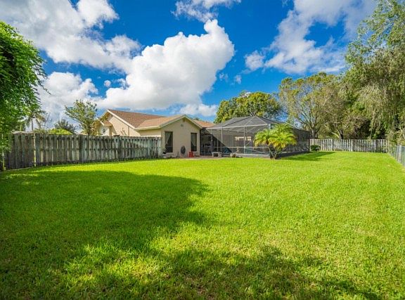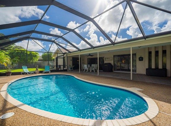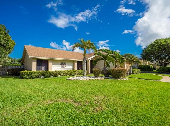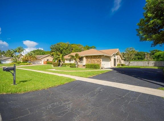 Beautiful pool home in desirable Boca Chase offering 3 bedrooms, 2 bathrooms - this home has it all! As you approach you will notice the eye catching curb appeal which includes lush landscaping, new paint and an expansive driveway which fits 9 cars! Upon entering through the covered entryway you will be greeted by spacious living areas, soaring cathedral ceilings, diagonal tile, knockdown and 5.25 baseboards! The lovely, updated kitchen has wood cabinetry, granite counter tops, a wonderful island with pull out drawers and newer appliances including a flat top range with front knobs. All of the bedrooms are also spacious and the master bedroom has beautiful vaulted ceilings and offers a large walk-in closet with built ins. This home has many more upgrades including a huge covered patio,