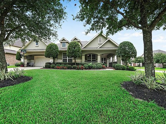 Incredible 1.5 story Ashton Woods home that sits on a huge corner lot in the very popular gated community of Terravista Estates zoned to the exemplary Klein ISD! This home features a beautiful wrap-around front porch and an amazing backyard with wonderful covered back patio, sparkling pool and spa, plus lots of grass area and storage shed! Interior boasts of 3 bedrooms down and gameroom, bedroom and full bath up, large study with double glass French doors, spectacular kitchen with huge island and breakfast bar open to the 2-story family room with corner gaslog fireplace! The garage is an oversized 2.5 car garage that can be used as a great storage space or a golf cart parking space! This home is better than new with all of its custom finishes!