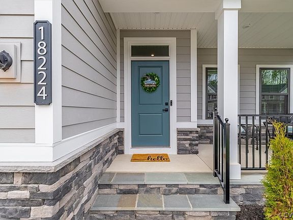 Nestled in the back of Chesterfield's highly sought-after Magnolia Green subdivision, this "Hudson" model by Ryan Homes, completed in September 2023, spans 2740 sq. ft. with 4 bedrooms, 3 baths. Unique to this home is a guest bedroom on the first floor, distinctively set off the kitchen with access to a full bath, offering an ideal setup for guests or as a “primary-on-main” alternative, despite the bathroom being detached. This feature sets it apart from other models where this space is often a flex room. In addition to this extra bedroom, the first floor also features an office/study with french doors. The house boasts a chef's kitchen with quartz counters, Ryan Homes’ luxury package appliances with gas cooking, a primary suite with a Roman shower, an upstairs laundry room, and an upstairs loft with a bump out for extra space. Enhanced by $5k worth of black-trimmed windows and a pulldown attic with 8 ft wide plywood for storage, the home's practical elegance is unmatched. Energy-efficient features, a 12x10 deck with a gas line hook-up for entertaining, and community amenities like a pool, clubhouse, and tennis courts, make this a prime opportunity for those seeking a sophisticated lifestyle in a vibrant community.