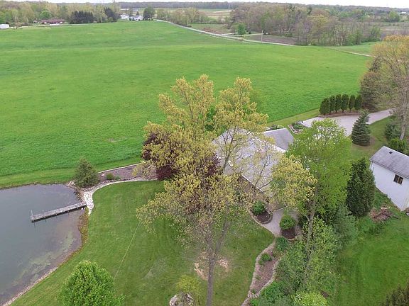 What a dream house! This sprawling ranch with over 1,800 sq. ft. sits on the most beautifully landscaped lot covering more than 5 acres. A private pond complete with a sandy beach, pier, outdoor speakers and fountain can be used for swimming and fishing. The lovely Willow Creek borders the property to the North and a large private field sits to the East. There is no lack of storage with an oversized garage and a two story barn! You will love the large living room complete with beamed, cathedral ceilings and a gorgeous stone fireplace. The 4 seasons sunroom offers scenic views from all sides and can be used all year long. The master suite has a remodeled bathroom and walk-in closet. The remodeled eat-in kitchen is complete with custom cabinetry, Corian countertops, spacious pantry, a planning desk and a large island. Premium carpet/padding, windows, siding, gutters/soffits, appliances, fixtures, pellet stove, deck, patio door and skylights are just some of the upgrades made in recent years. Come see it in person before it's gone!