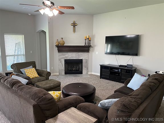Wonderful family friendly neighborhood of Stonegate IV in Broken Arrow School District. Enjoy community amenities - Clubroom, park, swimming pool, trails. This beautiful home boasts 3 bedrooms plus an office. Open floor concept and split bedroom floor plan. Kitchen with granite countertops, island w/eating bar, coffee bar, built-in hutch, walk-in pantry. Living room with gas log fireplace. Master bedroom and private bath with double sink, walk-in shower, soaking tub, and walk-in closet. Laundry room and mud room with built-in coat rack with cubbies and built-in desk. Oversized two car garage with remote access. Close proximity to expressways, schools, restaurants, shopping, and Nienhuis Park Community Center. NO cats. One small/med dog OK.