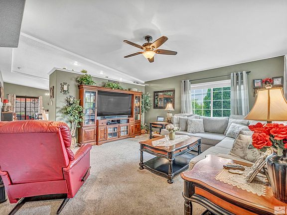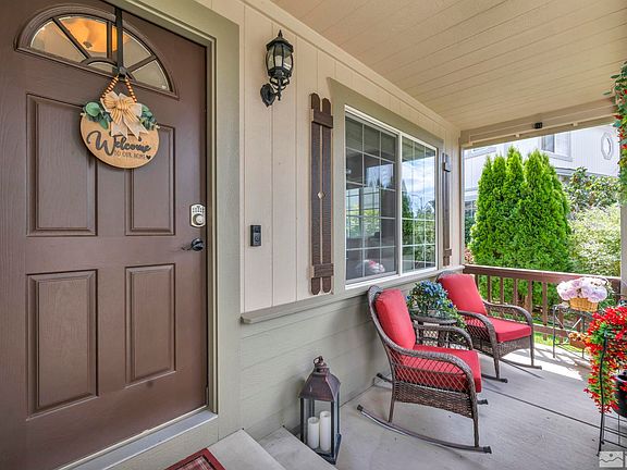 This home Has It All! You will love the floor plan of this Move-In ready home on almost a quarter acre with wide streets & no across the street neighbors. Custom painted exterior in 2023. Imagine having your coffee on the covered front porch with awe inspiring mountain views. Vaulted ceilings throughout. The formal living room & bedrooms have near new carpet, plus newer custom paint throughout. The chef's gourmet kitchen features newer white cabinetry, formica, brown quartz deep single sink, motion sensor, high pot faucet, dishwasher, convection gas stove, micowave, breakfast bar & large pantry. The spacious family room offers a great entertaining area with a long wall for an oversize TV screen. Custom Anderson slider ushers you out to your backyard oasis. Under the gazebo is the almost new Sundance hot tub to soak away your cares. Lush lawn and colorful plants surround the back yard. There’s even a separate playground set and area for the kiddies. Wide RV access with a 40' concrete pad.