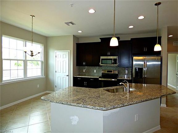 Large open great room plan with tall ceilings and windows all around. Island kitchen features granite tops with pendant lights and large walk in pantry. Of course there are stainless steel appliances, 18x18 tile in the living areas, wood cabinet doors. Three bedrooms in a Split bedroom plan plus a den. All the goodies you want are here!!! Enjoy the lake view from your private screened lanai. Condo living at its finest enjoy all the benefits, no yard to mow, no pool to clean, no building to maintain all for you to enjoy!!! Ready for you to move in to in just a few weeks!!! Come and see today!!!