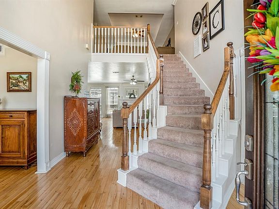 Gorgeous home with many recent updates. Open floorplan 2 story home with curved staircase. Hardwoods throughout the downstairs. Large island kitchen that open to the den. Kitchen has granite countertops and convenient breakfast bar. 5 spacious bedroom home with the primary downstairs featuring huge bay windows. Updated En-suite with vanity, mirror and tile, dual sinks, and dual walk-in closet, crown moldings, and a luxurious carpet upgrade with memory foam in the primary bedroom . Floors in the bathrooms upstairs have also been updated, The game room upstairs has convenient built ins. Gorgeous backyard with pool, spa, covered patio and lushly landscaped backyard featuring a rock water & pebble tech surface, and gas firepit, beautiful ambiance with outdoor lighting. Recently updated Hardi siding, paint on the back side of house. Zoned to Klein ISD.