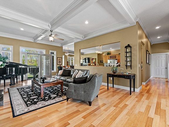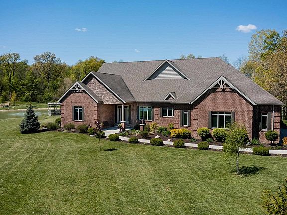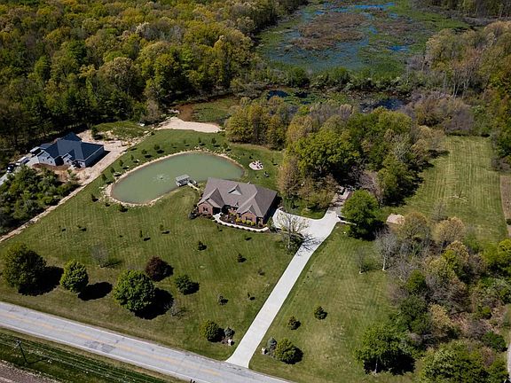 Located in the highly regarded Northwest Allen County School District, on a beautiful 8.6 acre parcel, this wonderful custom built 3 bedroom home offers 2 full baths, and 1 half bath and just over 3000 sq feet of living space with 10 ft ceilings throughout, a 3 car garage with a walk-up attic space, and a 20 X 40 building for all of those toys. Beautiful bamboo flooring throughout most of the living space of this split bedroom floorplan home. The foyer leads into a large living room which has coffered ceilings, crown molding, a gas fireplace, and lots of natural light. A great office space is thoughtfully tucked just off of the foyer and offers views of the sprawling front yard. The kitchen is HUGE and offers custom hickory cabinets with soft close drawers, wonderful granite counter tops, large pantry, & stainless appliances including a gas cooktop, built-in ovens, & a seldom used Bosch dishwasher. The dining space/hearth room is inviting with it's stacked stone gas fireplace and wonderful windows. The large owner suite features a tray ceiling, a door leading to the patio area - a perfect spot for morning coffee as you watch the wildlife drink from the pond. 2 large walk-in closets are conveniently located next to the en-suite which features a wonderful freestanding soaker tub, separate shower, & double vanity. 2 additional large bedrooms are located at the far end of the home and share a Jack-n-Jill bathroom. A nice laundry room/mud room are locate new the entrance into the oversized 3 car garage. Walk-up steps lead to an attic area which provides for lots of storage space. An amazing patio with outdoor fireplace is wonderful for those evening of entertaining. If you are a water fowl enthusiast, or just simply love the serenity of being outdoors with nature, this is the perfect home for you with a large pond and a small shallow lake, wooded areas, wetland area, and more. Average Monthly Utilities: AEP Power $100, Propane (rented tank) Budget $100.