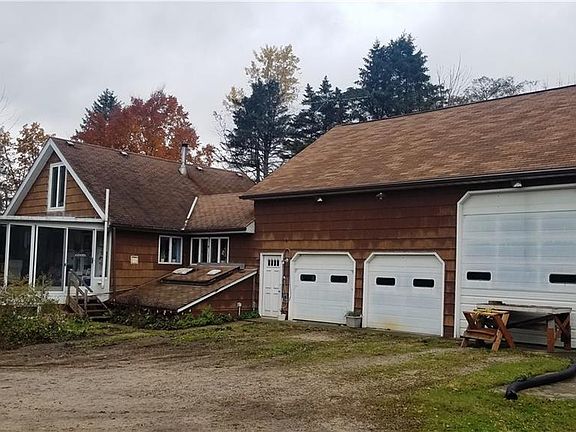 Beautiful 53 acres with 3 bedroom house and barn, located in Troy Township in Geauga County, right off of Rt. 422 by LaDue Reservior. The property offers landscaped trails, a small pond located on the Southern portion of the property, apple trees, wooded and open areas with a creek that runs through it. The three bedrooms, 1 bath bungalow is being sold AS-IS and seller will make no repairs or updates. Home offers an eat-in kitchen, living room, 2 bedrooms and a full bath on the first floor. The second floor offers a bedroom and 2 other bonus rooms. Sun porch to the rear of the home that can be accessed from the garage. Enjoy the large enclosed sun porch off the kitchen. The attached 3 car garage offers 1 bay with 12 ft door/ceiling and a full walk up, second level--perfect for storage. A second 32x52, 2-story pole barn with 10 ft doors, concrete floor, electric and exterior water spigot. The pole barn also boasts a full open 2nd level. All of this space is perfect for cars lovers, machine shop, etc. A Potting shed with scalloped siding and attached chicken coop was built behind the home in 2001. Large turn around/parking area is located between the 2 garages. Enjoy this secluded wildlife haven and let your imagination run free and make this your personal escape. Begin your story here.