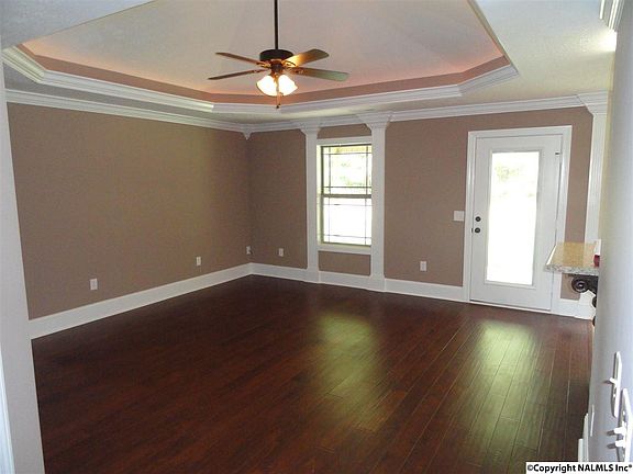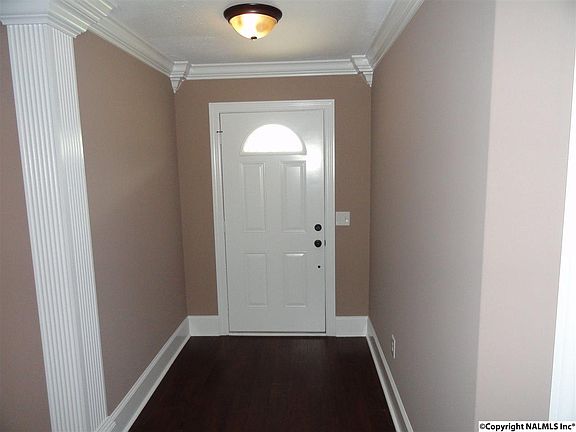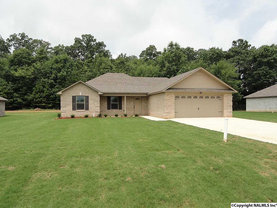 Brand new, full brick with 4Br,2Ba.Wood floors and tile in wet areas.Tons of Crown mold and extensive trim package.Dbl trey in Master.Vaulted turtle shell ceiling with mood lights in LR.Breakfast bar in kitchen.SS appliances.Custom made real wood cabinets.Nice soaking tub and separate shower in Master bath.Covered back patio and front porch.100% financing with USDA loan.Less than 20 mi.fr Research Park,Arsenal,Hsv, and Madison.Treed Lot.Quiet dead end street