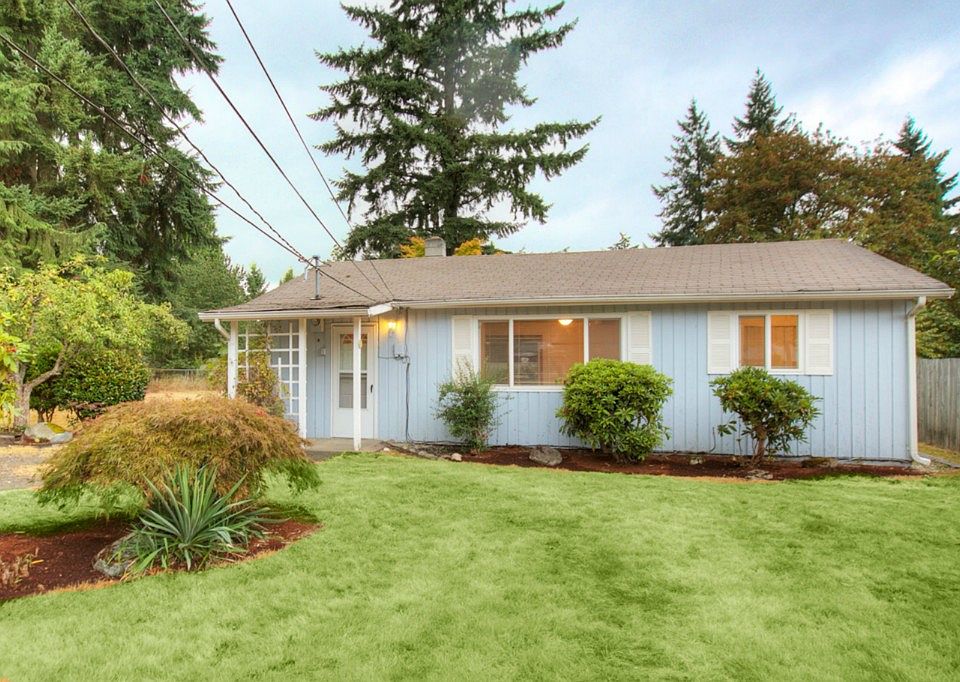 Perfect investment or first time home available now! Very cozy and quaint 2 bedroom, 1 bath rambler in Renton. Fully fenced, extra large lot with tons of space for parking or place for a garden. Back yard features covered patio and nice size storage shed. Mature trees, fruit trees and shrubs throughout property. Interior has updated carpets, paint and bathroom fixtures. Bathroom decor features nice wainscoting for a little extra detail. Very clean and ready for you to check it out!
