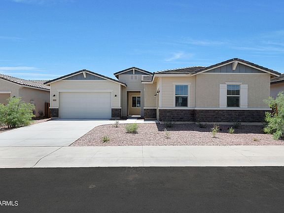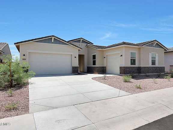 Beautiful new home in Litchfield Park area. Craftsman-style exterior elevation. This home has a large courtyard at the entrance as well as two large flex areas that can be used as living/dining or office space. The upgraded Chef's Gourmet kitchen features White Shaker Cabinets with Matte Black hardware, beautiful quartz countertops and upgraded Stainless Steel appliances including built-in double wall oven, built-in microwave, decorative hood vent over the gas cooktop and dishwasher. The private owner's suite offers a tiled walk-in shower, double-bowl vanity and walk-in closet. Faux wood plank tile throughout in all the right places! Ask about builder incentives to assist with closing costs or rate buydown. Home warranty included.