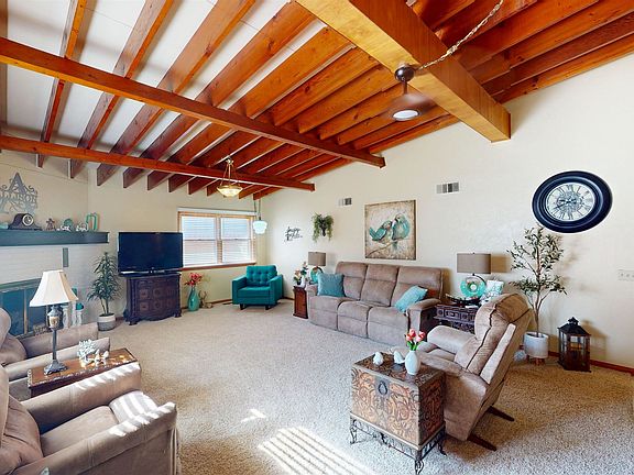 Welcome Home! This 2-bedroom, 2-bath home is move-in ready and filled with charm. The spacious living room features a cozy corner fireplace and wood-beamed ceiling, creating the perfect cabin-retreat feel. The kitchen offers beautiful oak cabinetry and a cheerful breakfast nook, ideal for morning coffee or casual meals. One of the highlights is the attached sunroom—perfect for a second living space, hobby room, or even a formal dining area. There is also a storm cellar accessible in the sunroom! Step outside to enjoy the wonderful patio, or take advantage of the 30x30 shop for projects, storage, or toys. With an attached garage and additional carport parking, convenience is built in. Don’t miss this inviting home—schedule a showing today!