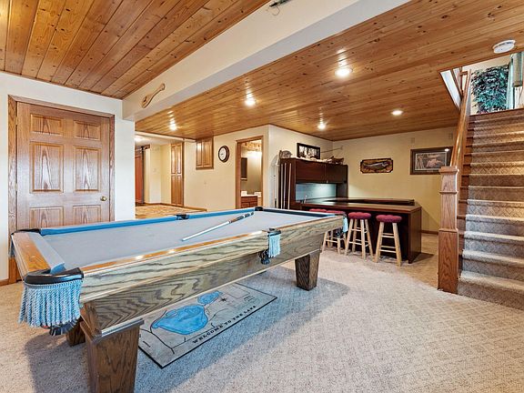 This gorgeous 1-story lake home sits on a beautifully landscaped 1-acre lot with approximately 150 feet of flat shoreline on Paul’s Lake (Florence), offering lakeside living at its finest. Enjoy panoramic water views from the brick patio or unwind beneath the lighted pergola or the hot tub—perfect for relaxing or entertaining. This home is ideally situated just down the road from a scenic walking and biking trail that stretches between Cambridge and Isanti, and right around the corner from the Cambridge Junior High School. It offers the perfect blend of outdoor adventure and peaceful lake living. Inside, you'll find a stunning open concept living area with soaring ceilings (21' peak!), expansive windows, and two moonlight windows that fill the space with natural light and capture beautiful views of the lake and surrounding wildlife. Immaculate hardwood floors stretch across the main level, paired with ceramic tile that adds both function and charm throughout. The custom-designed layout includes four bedrooms and three bathrooms, with a bright and functional main level featuring laundry for everyday convenience. The finished lower level offers even more space, including a built-in safe, a generous family room, and flexible areas for guests, hobbies, or a home office. One of the standout features of this property is the 30’x40’ heat-ready pole building, built in 2008, with 10’ walls, a 10’x15’ main door, a security room, and a loft for extra storage. It's ideal for housing all your recreational toys—boats, ATVs, and more. The property also includes two additional