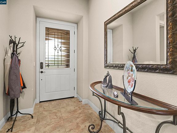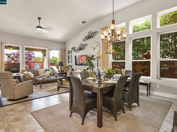 55+ Resort Style Living in Trilogy. Terrific, Quiet Court Location With View And Walking Access To The Vineyard Right Out Your Front Door. Extensive Tile Floors, Ceiling Fans, The Ever Popular Smart/Laundry/Hobby/2nd Office Room with Desk, Upper & Lower Cabinets, File Drawer & Loads of Counter Space. Granite Kitchen Counters, Large Pantry, Pendant Lights All Overlooking The Dining Room Area With Plenty Of Room For Your Large Table & Buffet & The Great Room With Vaulted Ceiling & View Of The Backyard. Large Primary Bedroom With Shutters, Bath With His & Hers Sink/Vanity Areas, & Walk-in Closet With Organizers. Beautiful Backyard w/Water feature & Pond, Faux Grass Area, Stamped Concrete Patio & Walkways, Overhang with Ceiling Fan/Light, Mature Trees and Plants. Don't forget the Gorgeous Clubhouse, Café, Spa Facility, Indoor and Outdoor Pools, Pickleball, Tennis & Bocce Courts, On-site & Off-Site Activities And So Very Much More. 20 Year Builder Pre-Paid Solar Lease. The Balance Of Term To Be Transferred To The Buyer