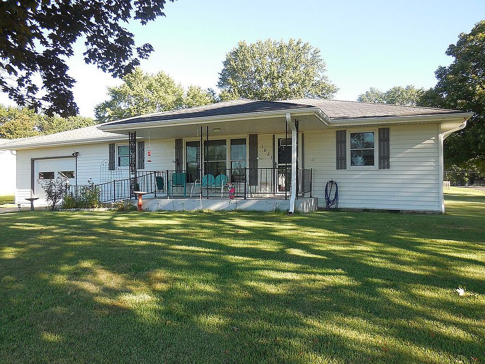 Sedalia MO: This very nice ranch home has three bedrooms, two bathrooms. One bathroom recently added and considered Jack n Jill bathroom. It has new shower, stool, sink and flooring. Kitchen has been completely remodeled with new cabinets, granite counter tops, new flooring, new stove, refrigerator and dishwasher. All exterior doors replaced recently. Hardwood floors though out. New laminate flooring in kitchen and both bathrooms. Two linen closets in hallway. All rooms recently painted. Nice front porch with ramp and no steps. Perfect for handicap or elderly person. Nice deck and a cozy covered back porch that offers privacy. Chain link fence around a large back yard. Storage building with concrete floor and double gate for access from side street. Nice big garage with new garage door and opener. Lots of storage space and pull down stairs for attic storage. Gas tankless water heater installed in 2021. Gas fireplace, gas furnace and a/c. Located on corner lot in good neighborhood. Shown by appointment only and must be bank qualified for a home loan. Will not rent or owner finance! Real estate agents are welcome to show with Authorization To Show.