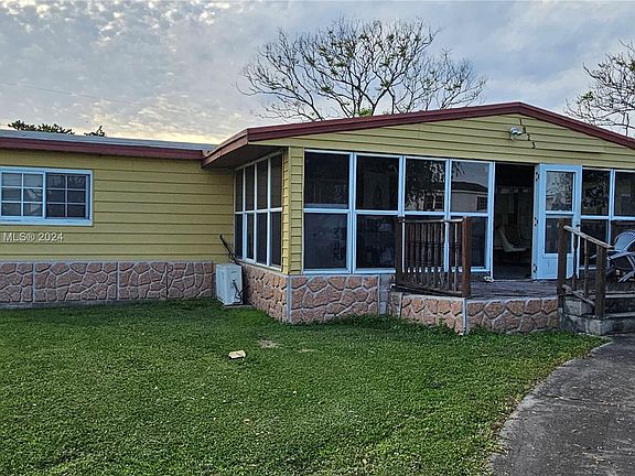 This can be your property! Spacious mobile home, 3 bedrooms, 2 bathrooms, 1440 Sf original structure plus additional with 1360 Sf in the added areas that include a front & back porch and kitchen, dining area and a third bedroom; and this property includes furniture. Roof and 3 separate AC units in good condition. Wonderful and spacious back yard with gorgeous lake view. Fruit trees include avocado, mango, guava and bananas. Plenty of space to park your boat or RV. Quiet community located in Hendry County, no City Taxes.