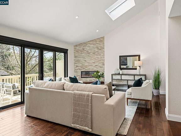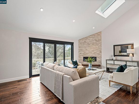 Beautifully updated 2 bed + office 3 bath townhome ideally situated at the end of a cul-de-sac in the private, gated community of Beacon Ridge. Surrounded by open space, trails & stunning views, it offers amenities such as tennis courts, a pool & clubhouse. This convenient location provides easy access to downtown Lafayette, Walnut Creek & Pleasant Hill, and is zoned for top-rated Lafayette schools. The main level features the family room with vaulted ceilings, skylight, fireplace & hardwood floors. The formal dining room flows into the bright, spacious kitchen which boasts a large island w/ seating, stainless steel appliances & convenient washer/dryer hookups. Sliding glass doors lead to a charming back patio with a fountain & bistro lights, perfect for outdoor dining. Also on the main level is 1 bedroom and a modern bathroom. Upstairs, retreat to the spacious primary suite with vaulted ceilings, large windows and a spa-like bathroom featuring a gorgeous freestanding tub, shower, huge dual vanities & walk-in closet with built-ins. A bonus room on the lower level, complete with a full bathroom, is perfect for an office or guest suite. Additional highlights include an oversized two-car garage with an epoxy floor & extra storage.
