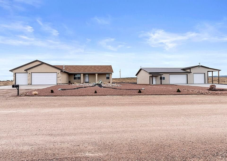 This spectacular 5 bedroom / 3 bath / 3 car garage rancher sits on over 2 acres! Plus 6 plus oversized vehicle spaces in Cleary Building. Home backs up to Walker's Ranch & offers incredible unobstructed views of all the mountain ranges. You will enjoy beautiful Sunrises on front porch & stunning Sunsets from the back.The front yard is a custom beauty with xeroscape and water feature. Step inside your future home & be greeted with an open-concept living room, gorgeous hardwood floors, electric fireplace and vaulted ceilings. The spacious kitchen offers beautiful cherry wood cabinets, stainless steel appliances and opens to the fully fenced and landscaped backyard. There is a split bedroom design that features 2 large bedrooms on the south side of home. The north side of the home has a beautiful master suite with walk in closet, a gorgeous 5 piece bathroom and a huge jetted tub. The enormous fully finished basement offers 12 foot ceilings, mini kitchen / wet bar, large great room, 2 large bedrooms with walk in closets and full bathroom. The large 2+ acre parcel has a newly built 50' x 40' Cleary building / shop with a 10,000 lb post-lift. YES! The vehicle lift comes with it! The shop has 220 service and is on its' own meter. The shop is truly amazing with oversized doorways and is a MUST SEE ! PLUS 15' x 50' Covered RV parking! The entire exterior has brand new stucco. This home is a rare gem that has so many extras to offer. Come see it before it is GONE!