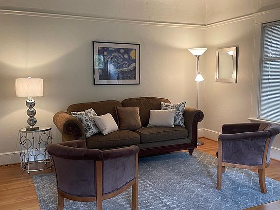 FURNISHED, short term rental (30-90 days). Circa 1920's large, spacious 1100sf duplex offers old classic charm with the warmth and comfort of modern day living. Built in dining room hutch, beautiful light fixtures,hardwood floors,gas fireplace, box beam ceilings just to name of few of the charms. Dishwasher, new high efficiency gas furnace,tile shower with tub and lots of storage. Shared private backyard. ~ W/D in basement - Rent $2450/mo includes utilities up to $200/mo -Security deposit $2000 -No smoking -No pets -$50 application fee per tenant -$225 cleaning fee - Very spacious floor plan -Oak floors throughout -Box beam ceilings -Vintage light fixtures -Energy efficient windows let in abundant natural light - Dedicated dining area with built-in china hutch -Generous cabinet space -Easy street parking in front of or close to unit - You'll enjoy living in the historic & lush Irvington neighborhood! It's an easy stroll to diverse shopping and dining options on NE Broadway, New Seasons or the Hollywood Fred Meyer are both nearby, and its a breeze to get to I-84, HWY 99 or I-5. Please no smoking of any kind, no pets. We'd love to show you around! Please give us a call to schedule an appointment and ask any questions you have. Short term furnished rental available October 1,2022.