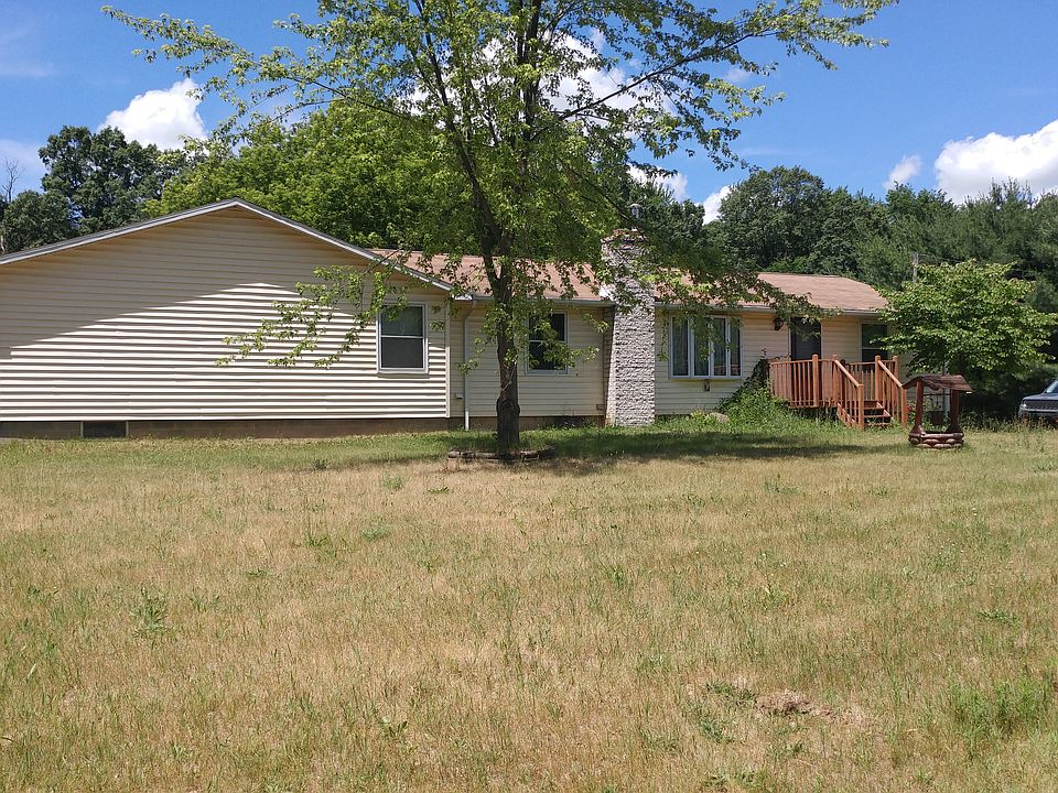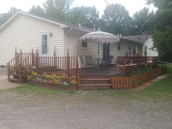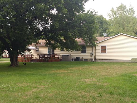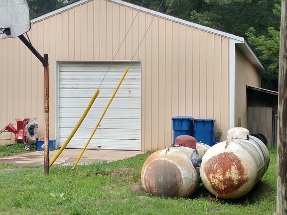 Large living room with vaulted ceiling. Open kitchen leading to outdoor deck which wraps around to the side door. Large Master bed, bath. First floor laundry room. Back bedroom and bath have private entrance from side door. Large 30x48 pole barn with 28x20 addition gives plenty of shop and storage space.