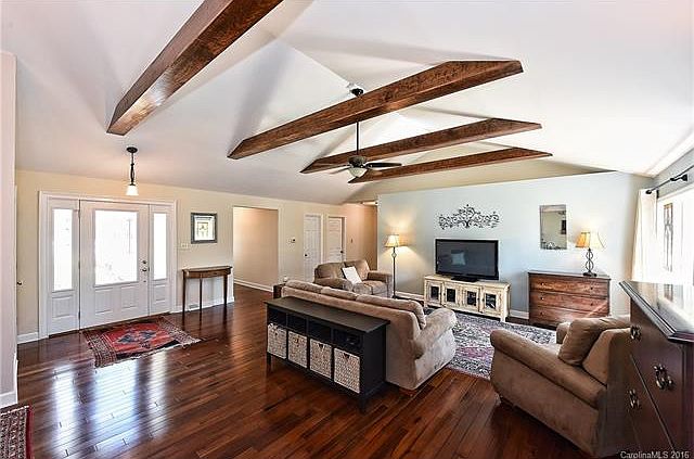 Renovated house in Barclay Downs. Home completely renovated in '13 w/ 4 bedrooms & 3 full baths w/master bath having dual vanities. GR has cathedral ceiling w/exposed beams. New roof in '15, new HVAC in '13, granite countertops in KT w/ eat in area which opens to screened in porch & deck. Both overlook level backyard. Entire yard is fenced, 2 Car Carport w/ 2 rooms for either storage or small workshop. Circular drive in front. House sits across from 3 most desirable schools in Charlotte.