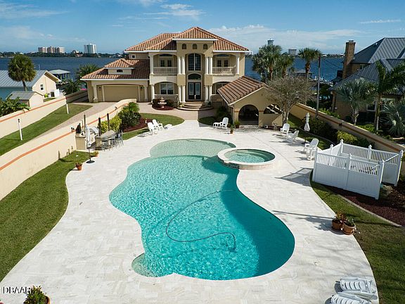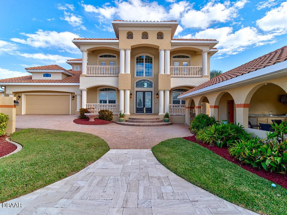 Welcome to a truly remarkable Mediterranean custom-built by Olson builders, nestled along the serene intercoastal waterway located on a 1.03-acre estate. This magnificent home boasts 5 BRs, 6. 5BA, and a grandeur that is simply unparalleled. A grand entrance reveals a soaring 22-foot high ceiling, adorned with a custom Murano chandelier and a curved stairwell. To your right, you'll discover a versatile bedroom/office space, while to your left, a dining room beckons. Yet, it's the awe-inspiring view that truly steals the show, pulling you towards the intercoastal waterway, where tranquility reigns.