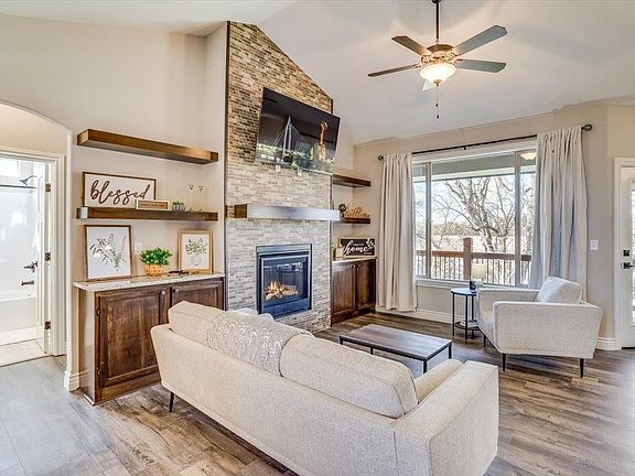 Welcome home to this stunning home located in the Whispering Lakes Subdivision! This absolutely beautiful 5 bed 3 bath home conveniently located and not one you want to miss! As you enter the home you will enjoy the lovely character this home has to offer, featuring and open concept split floor plan! You will love the build in shelves surrounded by beautiful stone and the beauty of an electric fireplace. Step into the spacious kitchen filled with cabinet space, and a lovely island for bar stools and a great place to entertain guests. Enjoy the privacy of the Master Suite that features a walk-in closet, double bowl vanity, and soaker tub in the bathroom. The main level features 3 Total bedrooms and 2 Full baths. As you enter the basement, you will love the living space and built in bar. Enjoy the additional 2 bedrooms/ 1 bath, and walk-out basement to the backyard that backs up to a treeline and open field for privacy! The yard has a sprinkler system on an irrigation well. Contact Pechin Real Estate Group for a Tour Today!