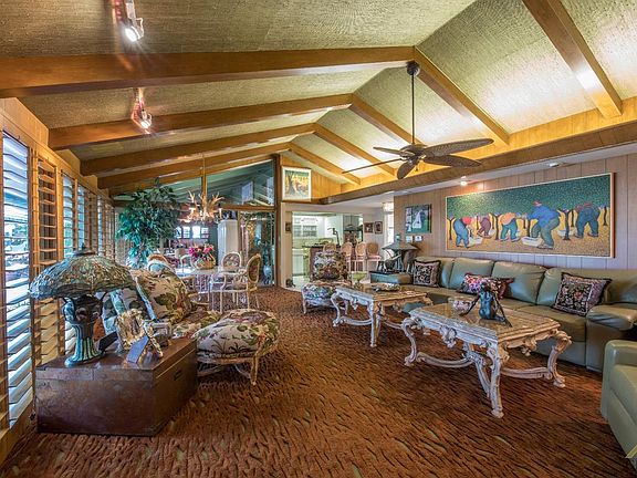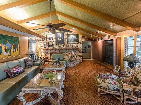 Custom built mid-century ranch style estate home is a buyer's dream come true! Stroll upon this property to view this lush outer grounds as you enter into this amazing home. Custom craftsmanship beautifully displayed throughout. This home is designed for entertaining and fully accommodates comfortable family living. Fabulous open single story floor plan! 4 spacious bedrooms, and 5.5 baths. Plantation shutters throughout. Custom carpeting in family room. Stunning large dining room accompanied with living room and built in double sided fireplace. Chef's kitchen with island cooktop, side by side sub zero fridge/freezer, decor ovens, and warming drawers. Fully loaded outdoor kitchen BBQ. Huge Pebble Tec pool with flagstone trim. All Patio in classic slate tile. Full guest house with bedroom, kitchen, and bathroom. Many more custom surprises! A must see to appreciate this one of a kind estate home.