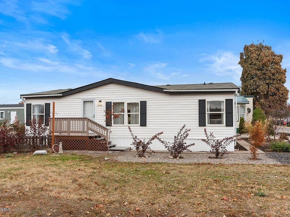 VERY NICE DOUBLE WIDE in Oak Crest Park with 3 bedrooms, split bedroom design and 2 full baths. Beautiful master suite with walk-in closet, master bath has double sinks. Covered parking and deck area and garden shed, vinyl siding, fenced back yard. Beautiful yard; front and back with raised garden beds and fruit trees. Park has pool, clubhouse and children's play area. Turn-Key, Move-In Ready!