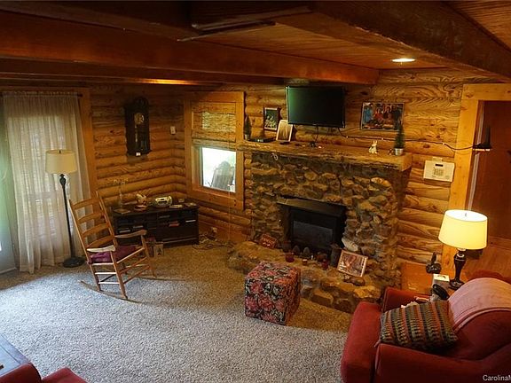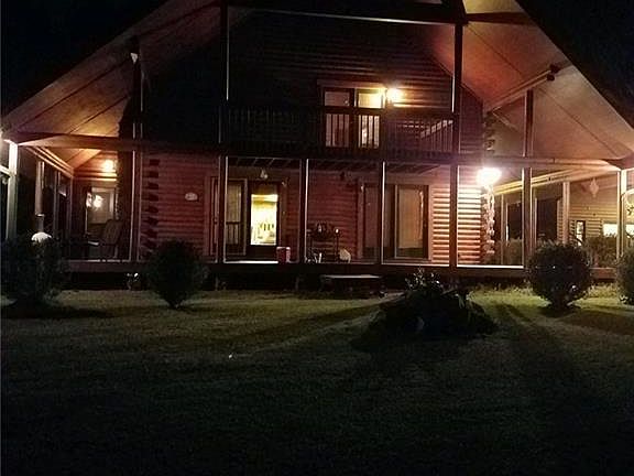 Southland Log home on quiet, serene setting of 18 acres. Wrap porch allows views of fenced pasture and stocked pond with pier. Great room rock fireplace, master on main with walk in closet, 2 BR, bath & bonus area upstairs. Exterior offers 24x28 garage with unfinished bonus overhead, 30x25 metal barn, 4 stall hay barn, tractor shed, chicken coup, fishing cabin and more!