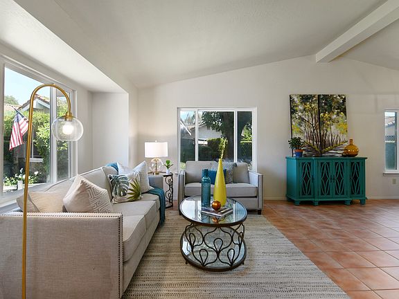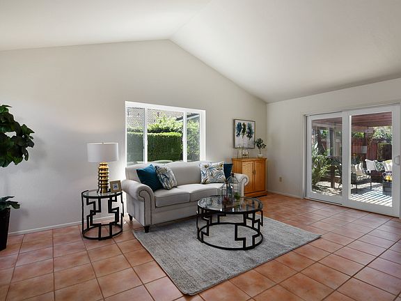 Single level home with a sprawling layout. Incredible, beautiful pie shaped lot on a cul-de-sac in a quaint neighborhood. Wide ex-large garage with 10 ft. rafters. Newer Central forced heat, A/C, H2O water heater, two dual pane sliders and windows. Tile roof, stucco exterior. Freshly painted interior, Saltillo-like tile floors through out. Carpet in bedrooms. Newer appliances, Family room, dining area and separate living room, feels like one big great room. Lots of wall space for your art. High ceilings and fireplace in family room. Privacy and greenery views out of almost every window. Ample closets and separate indoor laundry room. 20-30 minutes to San Jose or take the commuter train from Morgan Hill Depot. Lively and artsy Morgan Hill has a lot to offer for all. Nice eateries, events, activities, community center and college, parks, lakes, outdoor activities, great shops and small town appreciation. Its a lil bit country and a lot of rock & roll fun!
